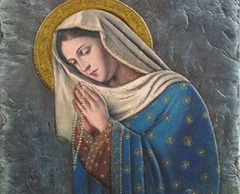 - This tile plaque from the artist Marco Sevelli celebrates Mary, the Mother of Jesus with the Our Lady of the Rosary tile.