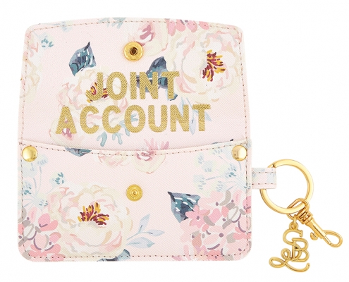 Store all of your credit cards and extra cash in this fashionable credit card pouch. Perfect size for a night out! Inside Reads: Joint Account