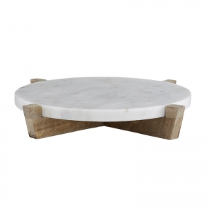 MARBLE TRAY + MANGO WOOD STAND – NATURAL