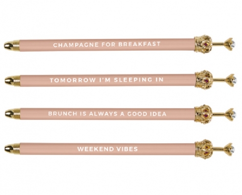 Rhinestone Crown Pens are topped with a metal crown and faux pearl that you click to reveal the ball point.