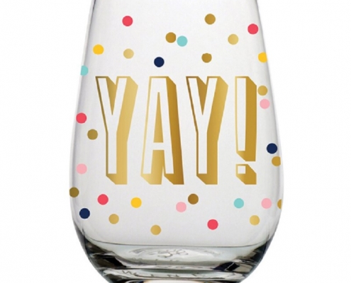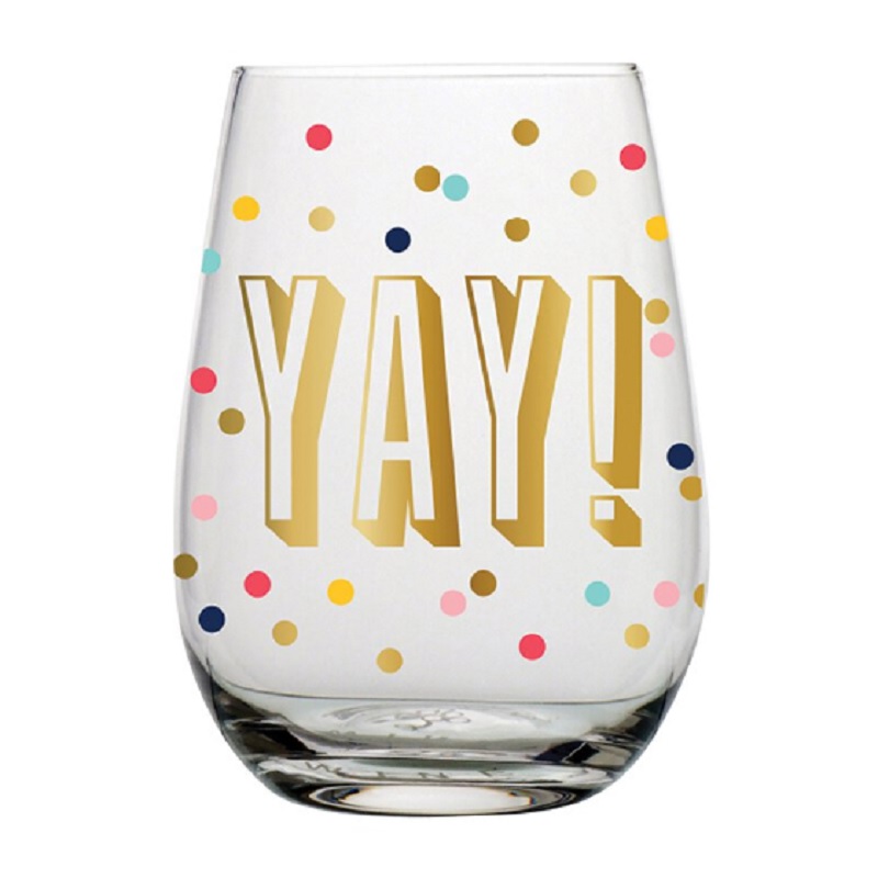 Celebrate special occasions in style with this cute and decorative stemless wine glass. This glass features: